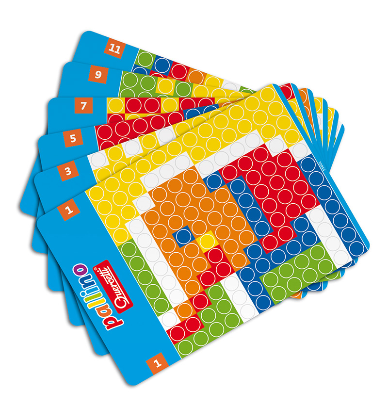 内含 6 张双面题卡,小朋友可以插入题卡,根据题卡的指示,将滚 珠送达指定区域,完成挑战;也可以发挥想象力用滚珠自由拼组图 案。游戏过程可以锻炼小朋友的手部精细动作,提高手眼协调能力, 锻炼逻辑思维能力。