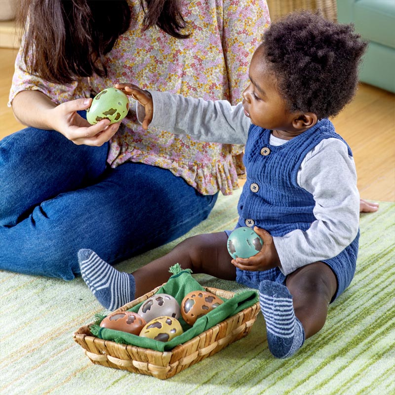 孩子们从 12 个月开始就可以用这套感幼儿感官训练恐龙蛋来探索声音和因果关系啦。